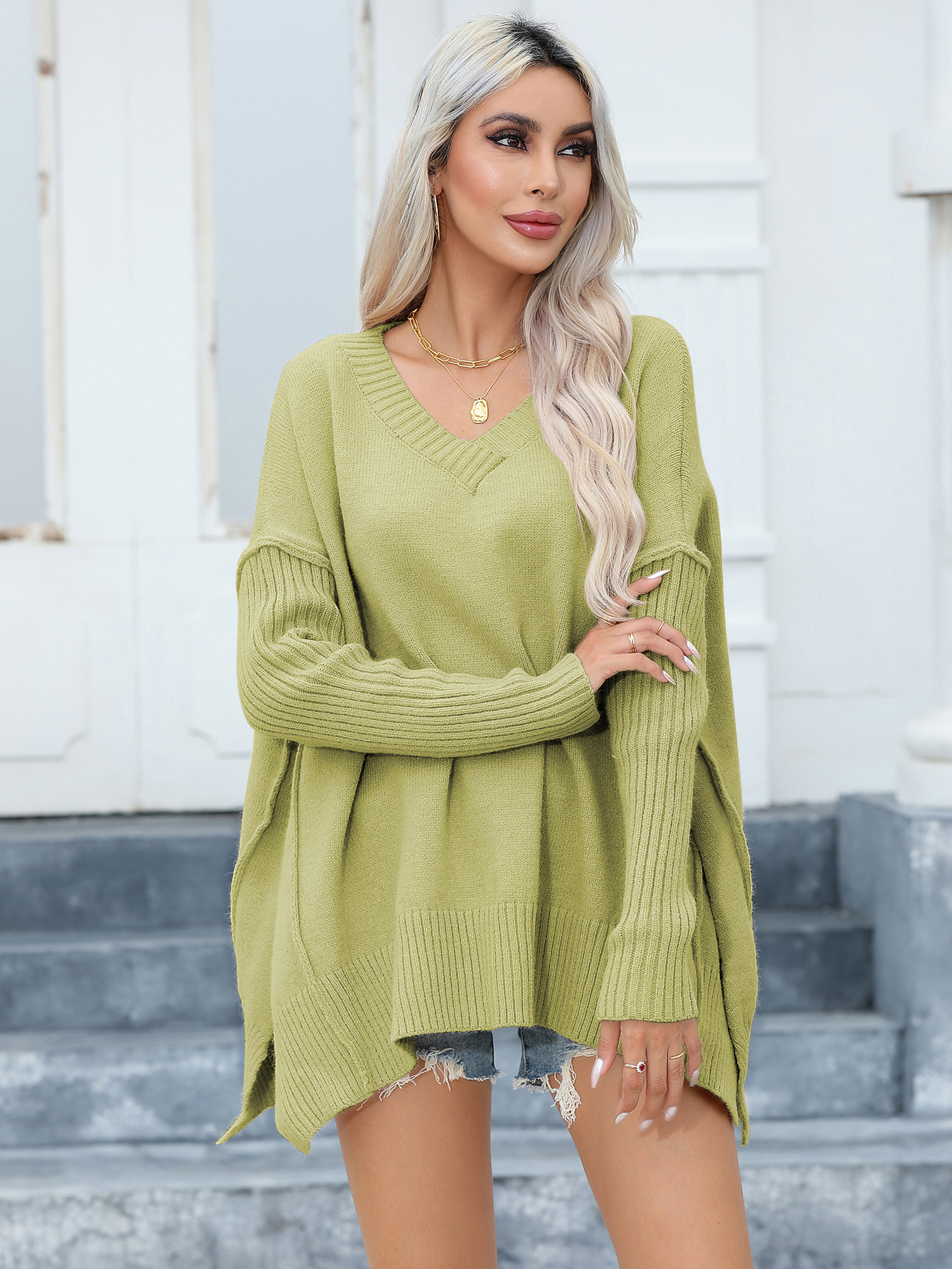 R.Vivimos Women's Oversized Sweater Fall Long Sleeve V Neck Loose Casual Tops Chunky Knit Pullover Side Slit Warm Sweater 21