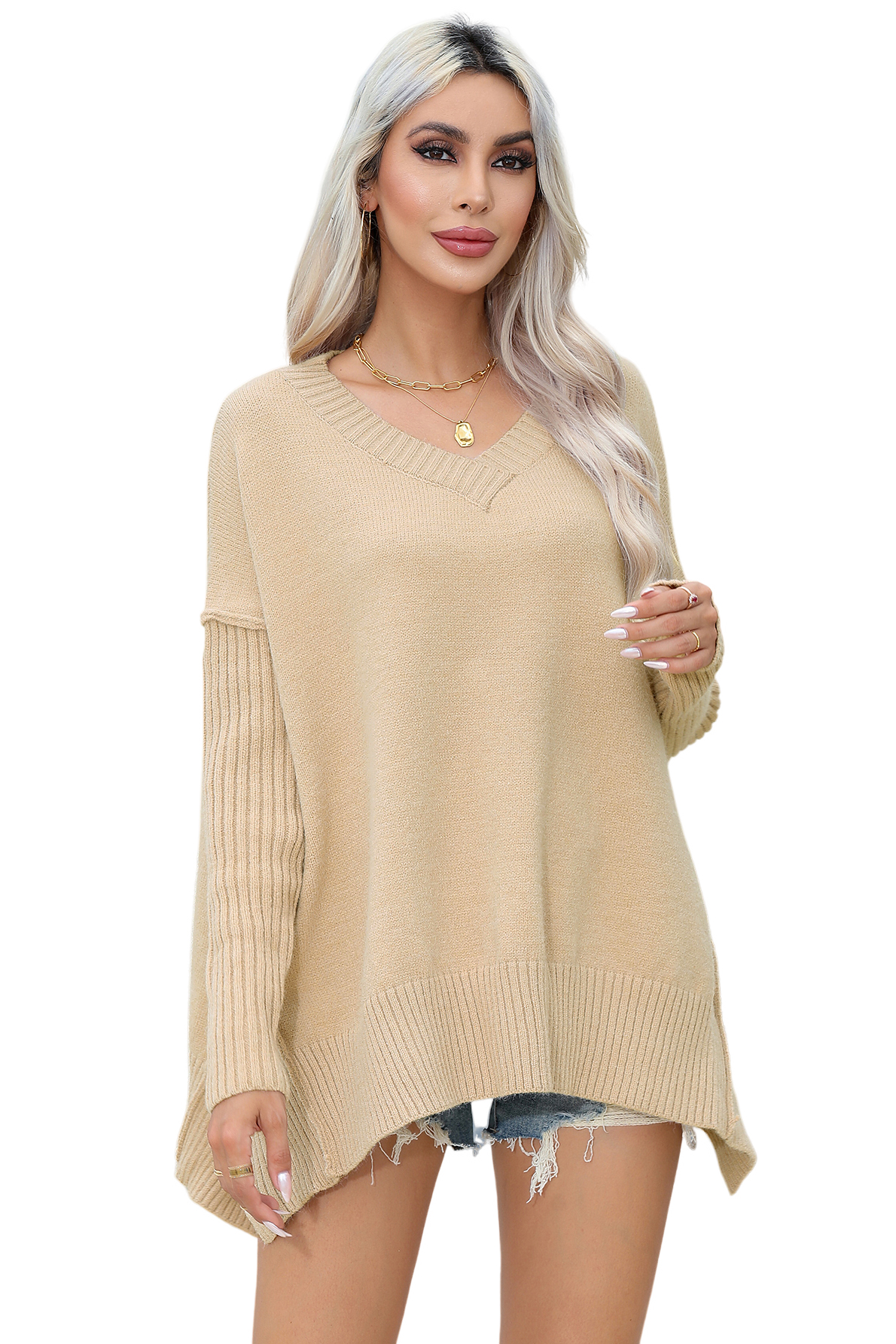 R.Vivimos Women's Oversized Sweater Fall Long Sleeve V Neck Loose Casual Tops Chunky Knit Pullover Side Slit Warm Sweater 15