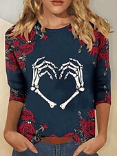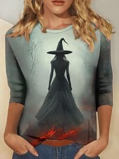 More information about Halloween Women's T shirt Witch Graphic Skull Vintage Fashion Stylish Long Sleeve Crew Neck Round Neck Regular Tops Daily Weekend Print Navy Blue Gray Summer Spring Fall