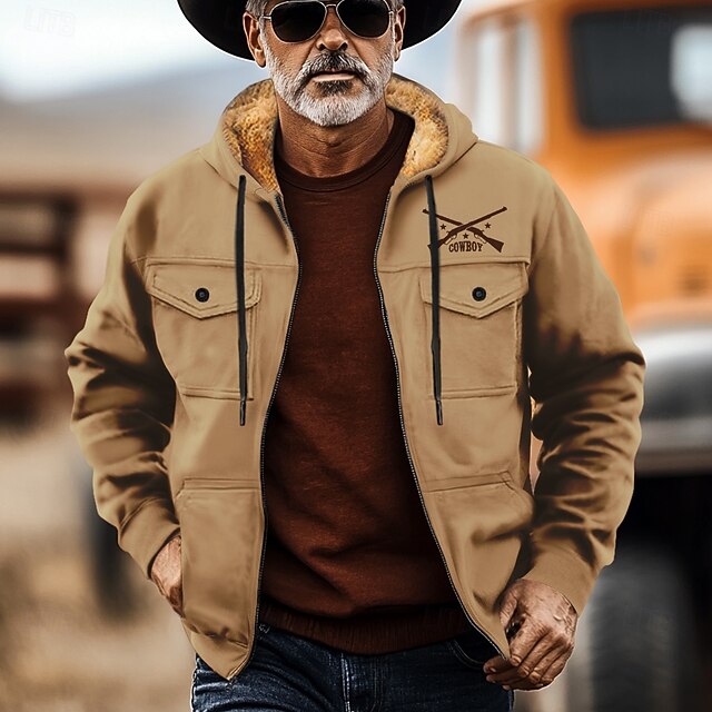 More information about Men's Cowboy Fleece Hoodies Fashion Cool Long Sleeve Hooded Holiday Streetwear Black Brown Zipper Pocket Fall Winter Designer
