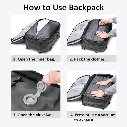 • Multiple Anti-Theft Design: Vacpack backpack with vacuum is equipped with hidden zippers, reinforced locks and rfid anti-theft pockets, multiple safety protections, effectively reduce the risk of loss, and make the journey more secure