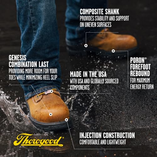 HOT ! Thorogood 8” Waterproof Work Boots for Men - Insulated & Safety Toe - Genesis Series - Full-Grain Leather with Comfort Insoles & Traction Outsoles