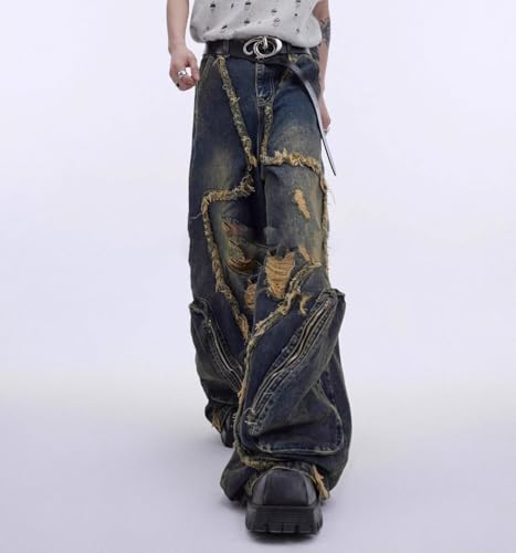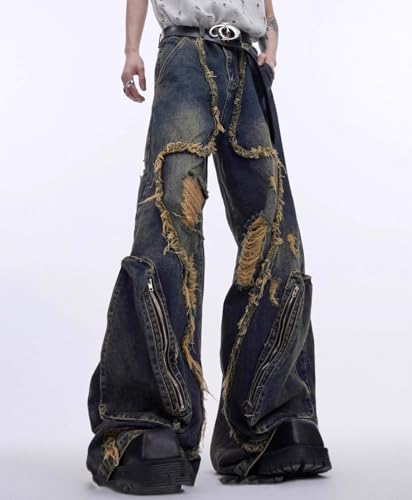 • 🔥【Extreme Distressing – Vintage Edge Reimagined】 Each pair is uniquely designed with heavy destruction, raw tears, frayed seams, and faded wash for an authentic worn-in look. These distressed denim pants go beyond basic ripped jeans — they’re an expression of rebellion and retro artistry. Perfect for casual wear, edgy styling, or fashion-forward photo shoots.
