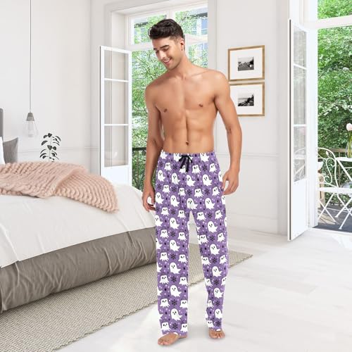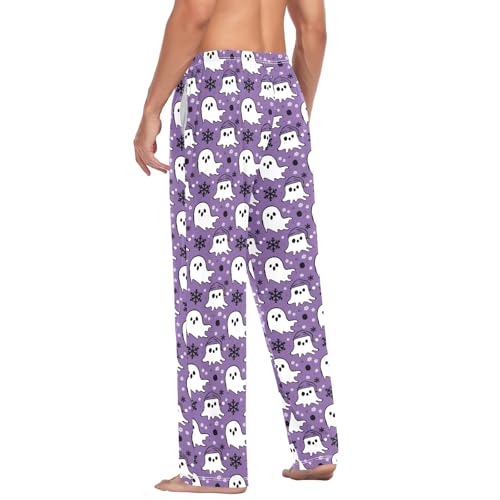 Mens Cotton Pajama Pants Sleep Lounge Pj Bottoms Sleepwear with Pockets Drawstring S Cute Ghost 3