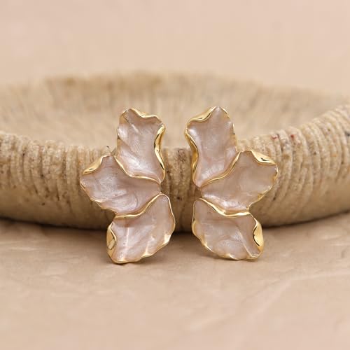 JeanBeau Gold Flower Petal Stud Earrings for Women, Trendy Statement Enamel Floral Earing Summer Prom Fashion Jewelry Gift 6