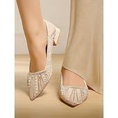 More information about Women's Pearl Embellished Pointed Toe Block Heels, Elegant Glitter Pumps for Cocktail Parties and Formal Events