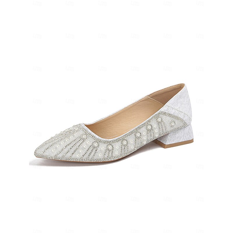 HOT ! Women's Pearl Embellished Pointed Toe Block Heels, Elegant Glitter Pumps for Cocktail Parties and Formal Events
