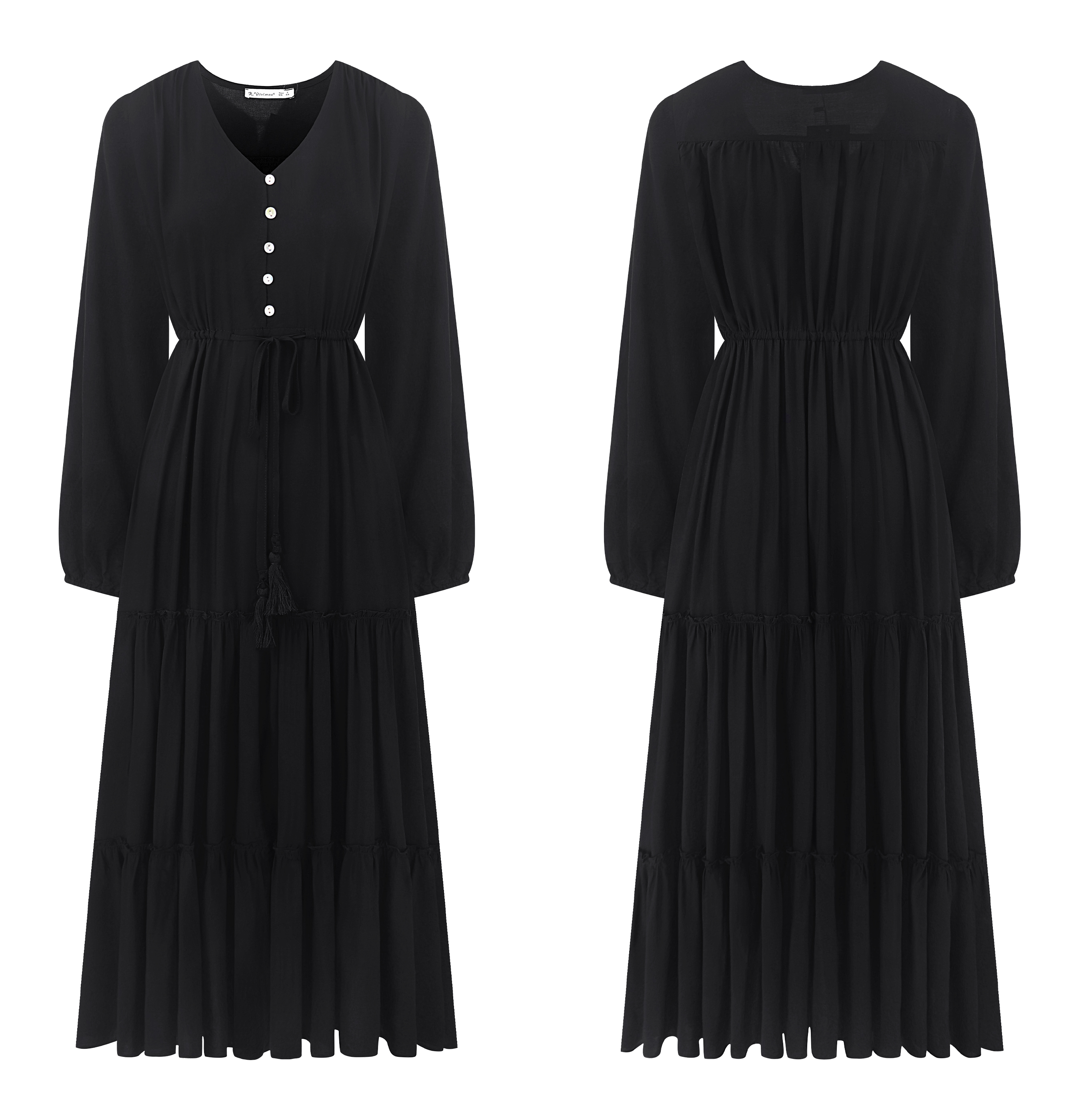R.Vivimos Women's Spring Summer Button Up A-Line Tiered Ruffle Flowy Dresses
