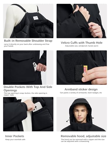 • 【Waterproof&Windproof 】These winter coats for men Water-Repellent shell fights bad rainy,snowor misty weather, keep your body dry and comfortable.Hood can be removed with zipper;The cuffs are adjustable and come with gloves.