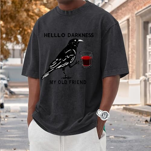 HOT ! Mens Oversized T Shirt - Red Wine Crow Graphic T Shirts for Men,Cotton Loose Fit Summer Tops Casual Clothes