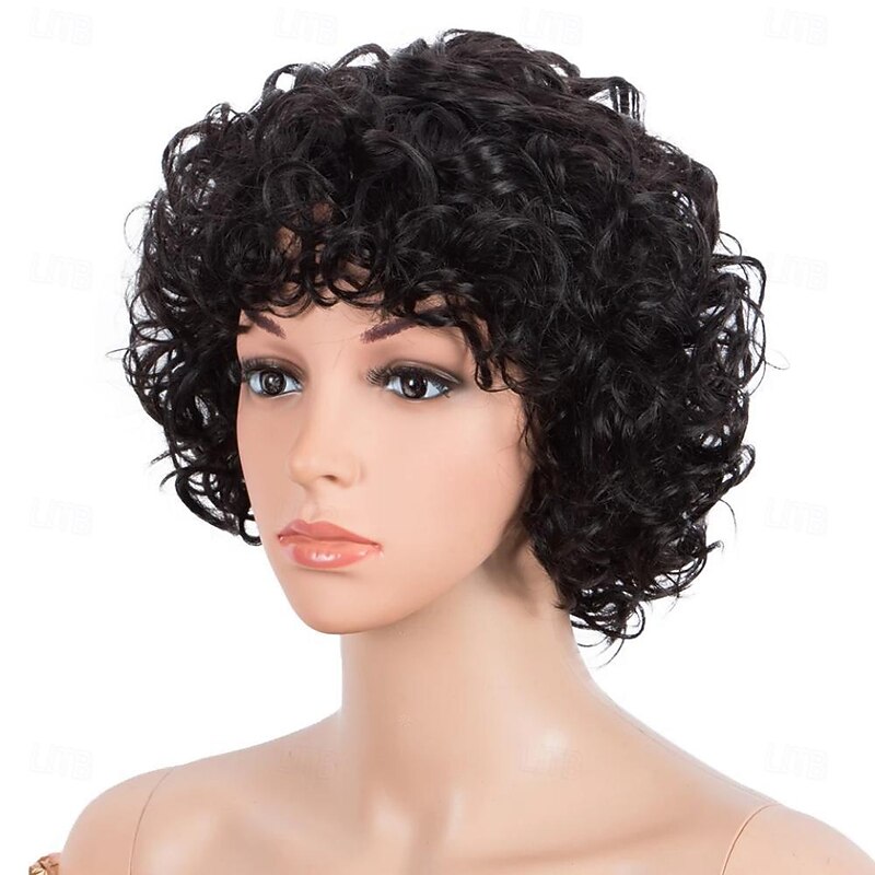 $71.99 - Short curly human hair wigs for Black women non lace glueless wig with bangs 2025. Shop for cheap Human Hair Capless Wigs online? Buy at lightinthebox.com on sale today!