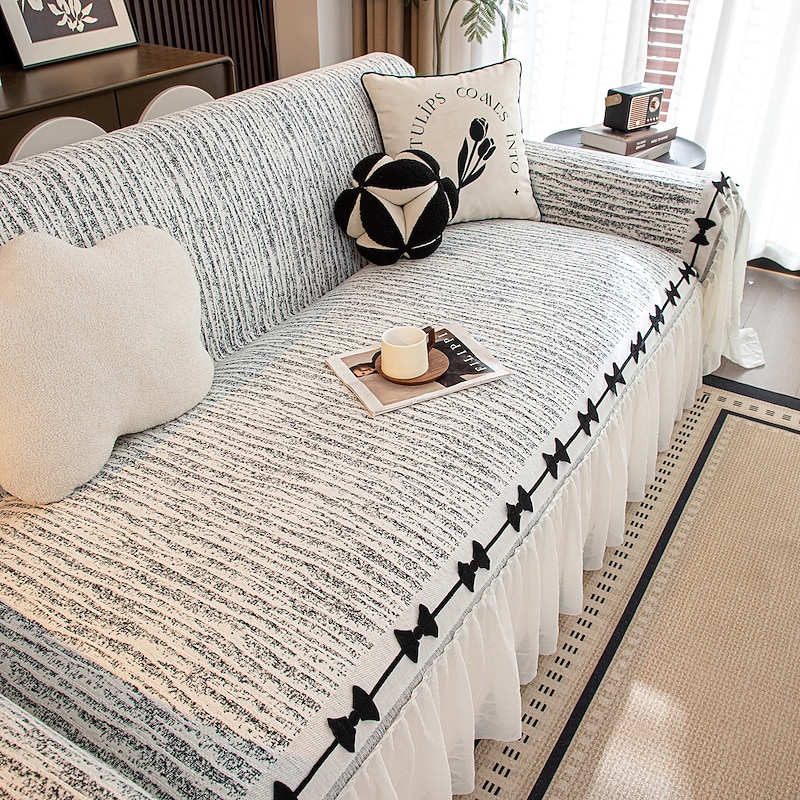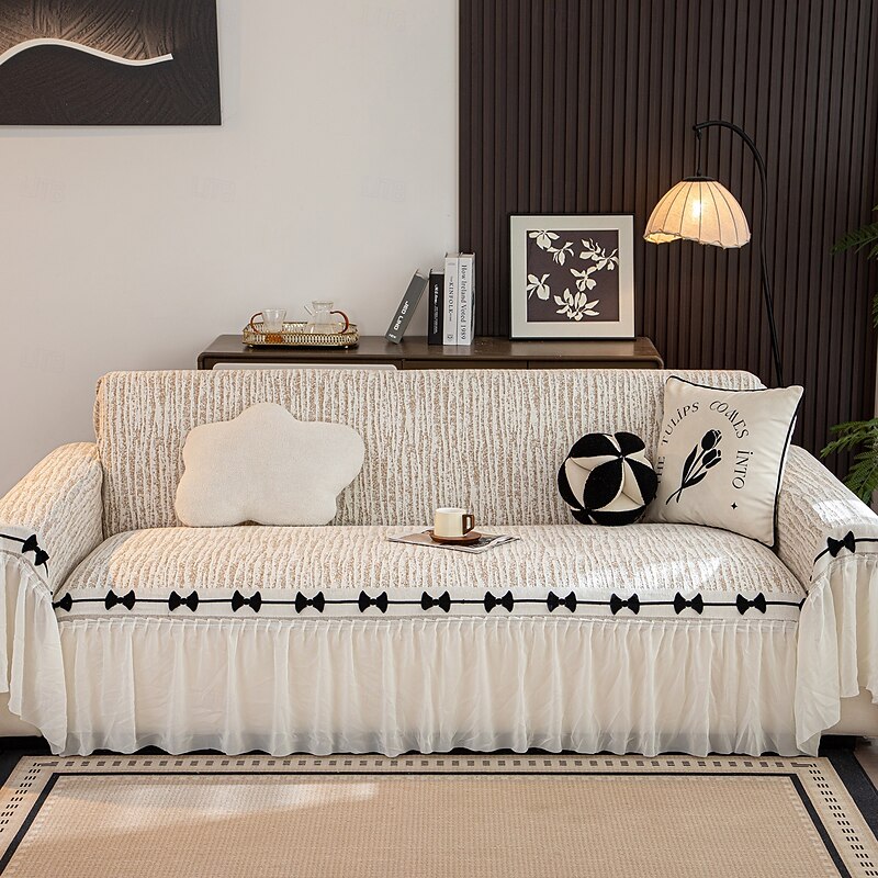 HOT ! Bow Skirt Couch Cover for Pets, Pet-Friendly Printed Sofa Towel Slipcover, Dustproof Non-Slip Elegant Sofa Protector for 1-4 Seat and L-Shaped Sofas