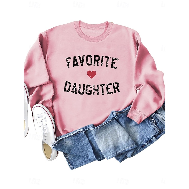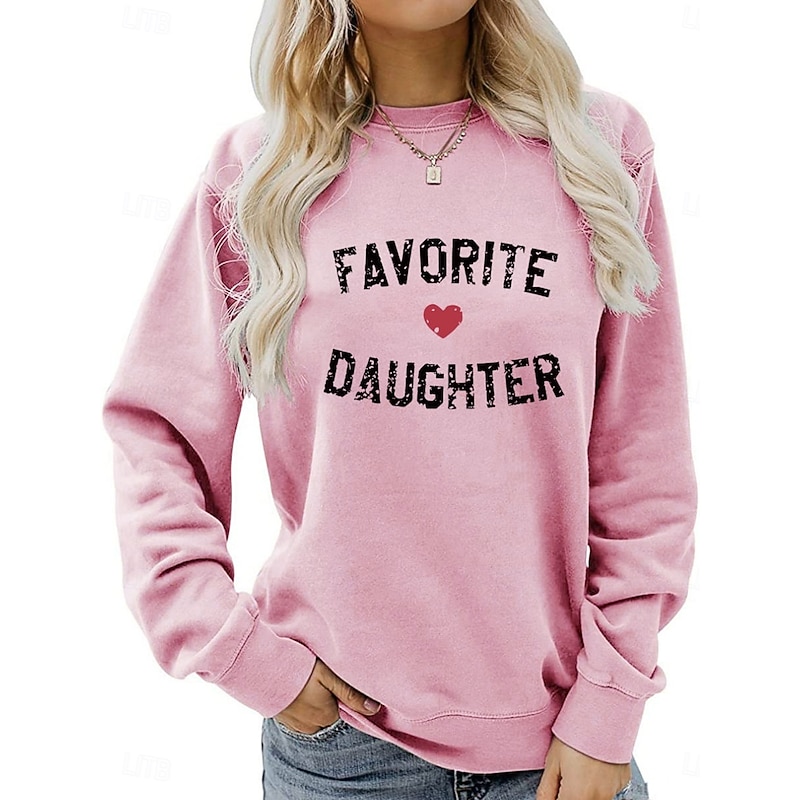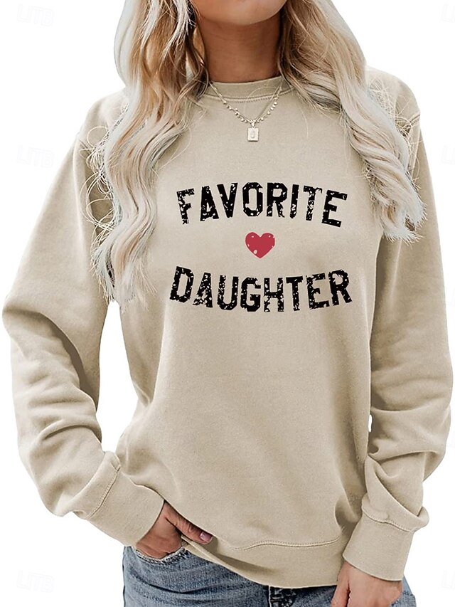 More information about Women's Valentine Funny Sweatshirt Favorite Daughter Casual Cotton Letter Valentine's Day Street Dailywear Crew Neck Print Long Sleeve Black Pink Khaki Fall Winter