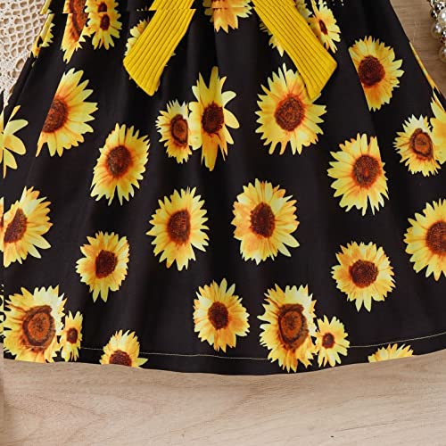 Summer Girls' Dress Small and Medium School Children's Shoulder Strap Lace Sleeveless Sunflower Print Splice Place Dress 6