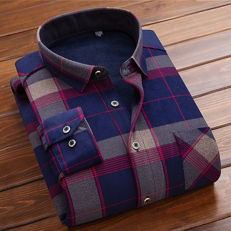 Men's Dress Shirt Plaid Shirt Collared Shirt Fleece Shirt Button Up Shirt Overshirt Plaid / Check Wedding Party A B C D Long Sleeve Square Neck Winter Clothing Apparel Warm 7