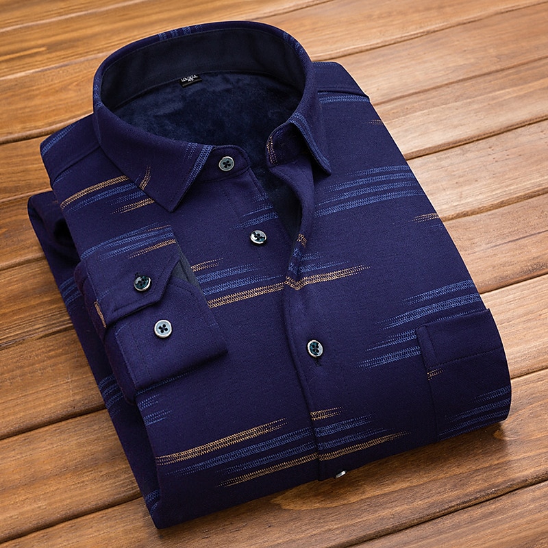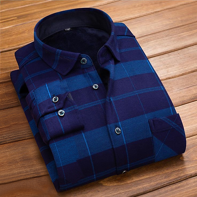 HOT ! Men's Dress Shirt Plaid Shirt Collared Shirt Fleece Shirt Button Up Shirt Overshirt Plaid / Check Wedding Party A B C D Long Sleeve Square Neck Winter Clothing Apparel Warm