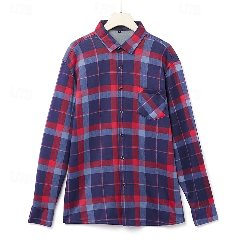 More information about Men's Dress Shirt Plaid Shirt Collared Shirt Fleece Shirt Button Up Shirt Overshirt Plaid / Check Wedding Party A B C D Long Sleeve Square Neck Winter Clothing Apparel Warm