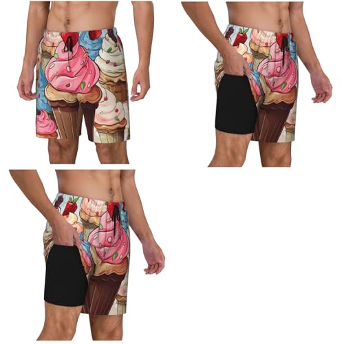 HOT ! Men's Swim Trunks Quick Dry Board Shorts Cupcakes and Ice Cream Beach Shorts with Pocket Bathing Suits for Men
