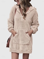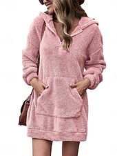 More information about Women's Hoodie Dress Mini Dress Pocket Fleece Casual Hooded Long Sleeve Pink Khaki Gray Color