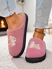 Why Choose Women's Peach Pink Plush Indoor Slippers with Cute Teddy Bear Embroidery, toasty Cozy Slip-On House Shoes for Winter Home?