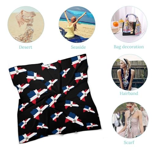 Dominican Republic Flag Map Bandanas for Women Satin Silk Head Scarf Multipurpose Square Scarves Clothing Accessories 6