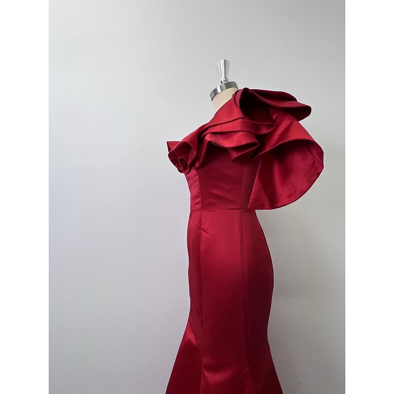 More information about Mermaid Evening Gown Corsets Dress Formal Wedding Guest Floor Length Sleeveless One Shoulder Taffeta with Ruffles Shouder Flower Masquerade Dress