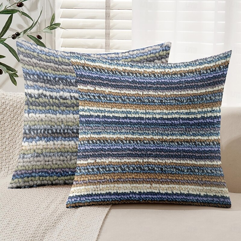 Geometric Strip Pattern Decorative Toss Pillows Cover 1PC Soft Square Couch Cushion Case Pillowcase for Bedroom Livingroom Sofa Chair 2