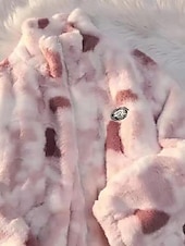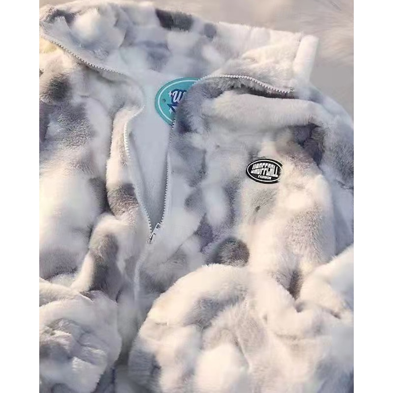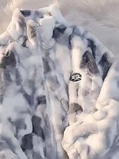 More information about Women's Fleece Jacket Teddy Coat Faux Fur Coat Warm Comfortable Zipper Casual Tie Dye Vacation Street Casual Daily Wear Regular Stand Collar Regular Fit Long Sleeve Outerwear Pink Blue Gray Fall