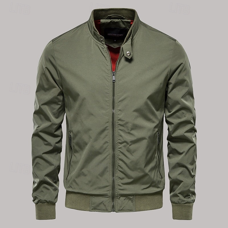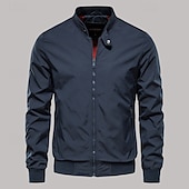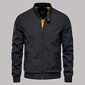 More information about Men's Bomber Jacket Transition Jacket Going out Lightweight Outdoor Zipper Pocket Spring Fall Solid Color Zipper Front Standing Collar Black Dark Navy Green Jacket