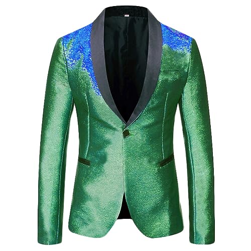 Mens Shiny Gradient Blazer One Button Shawl Lapel Elegant Suit Jacket 1