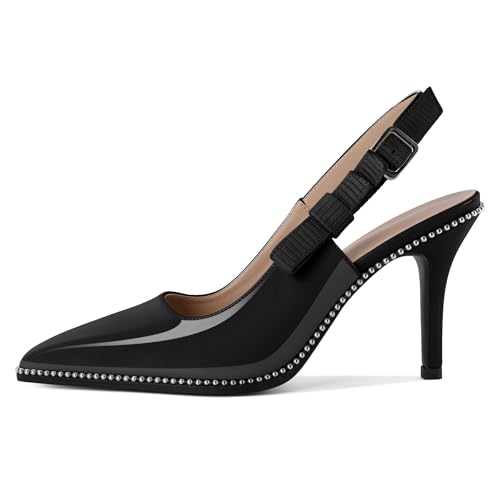 • 【High Quality】In addition to their stylish design, these pointed toe heels are also crafted with high-quality materials to ensure comfort and durability. The slingback heel style makes them easy to put on and take off, while the closed toe design provides added support and stability.