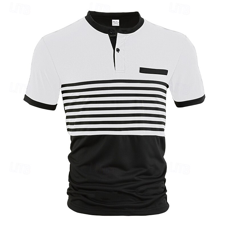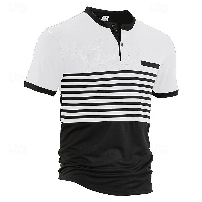 Multi Packs 2pcs Men's Stand Collar Short Sleeves White+Orange Button Up Polos Golf Shirt Golf Polos Shirts Buttons Stripe Vacation Daily Wear Polyester Summer 5