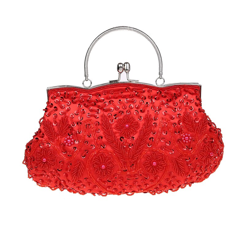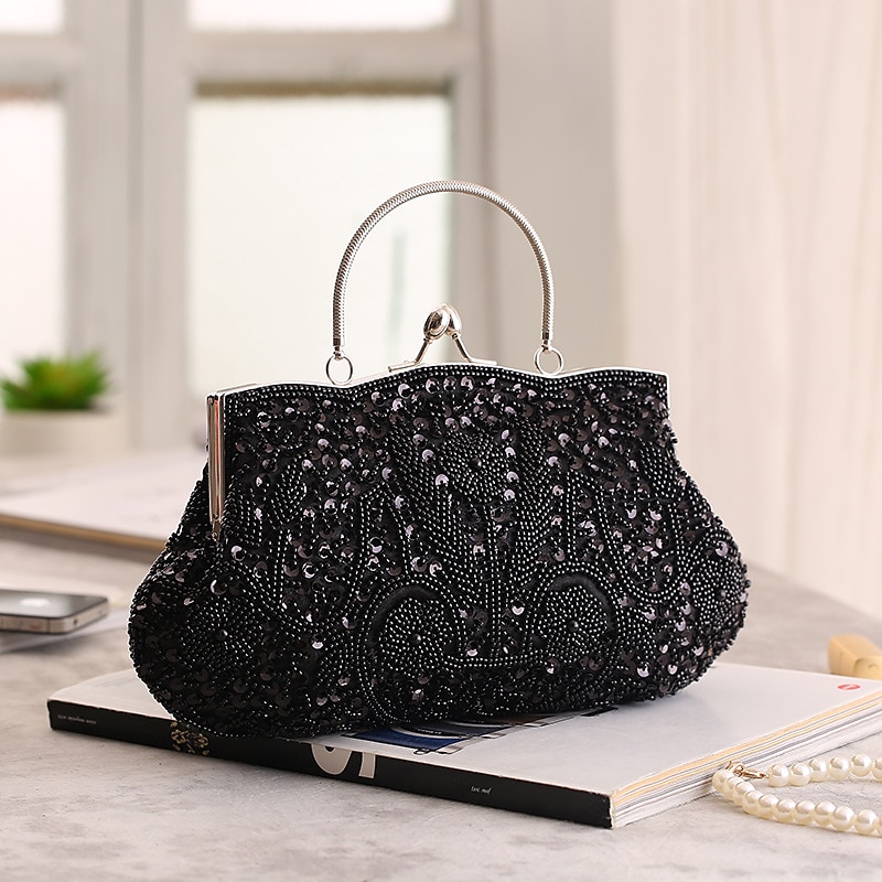 HOT ! Women's White Beaded Evening Clutch Purse – Vintage Sequin Embroidered Handbag for Weddings, Formal Events, and Cocktail Parties