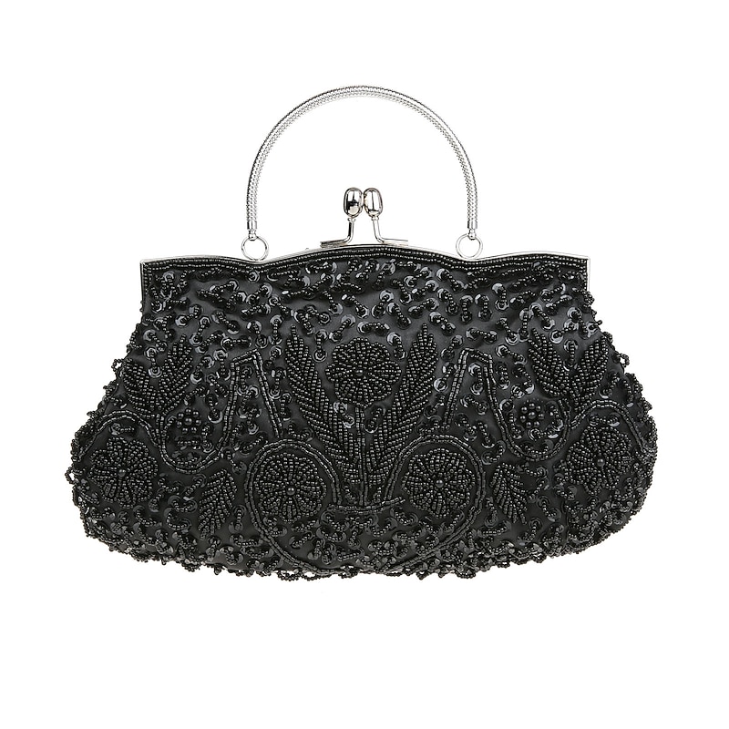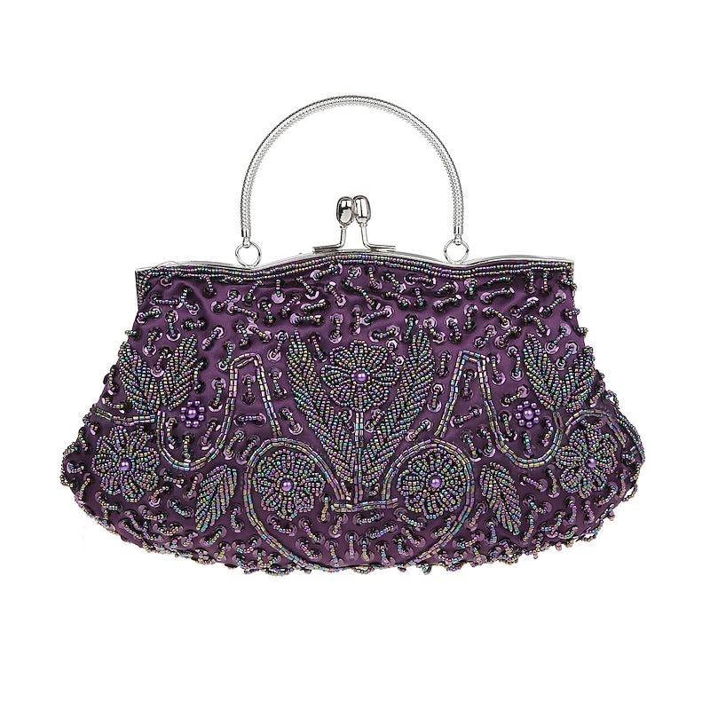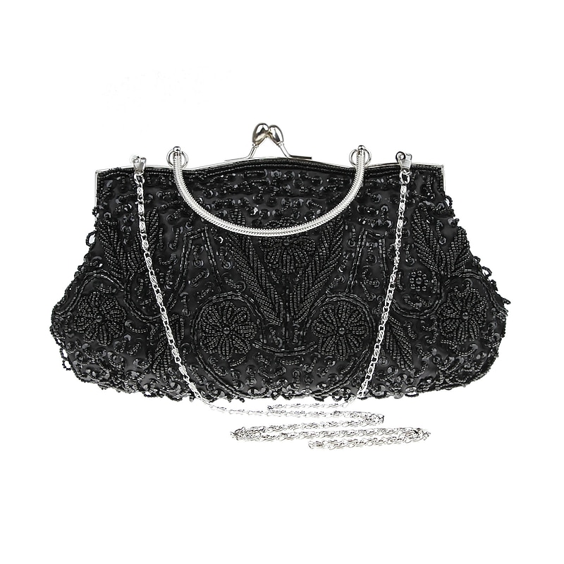 Women's White Beaded Evening Clutch Purse – Vintage Sequin Embroidered Handbag for Weddings, Formal Events, and Cocktail Parties 17