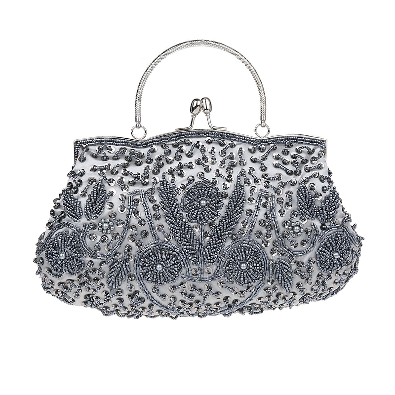 Women's White Beaded Evening Clutch Purse – Vintage Sequin Embroidered Handbag for Weddings, Formal Events, and Cocktail Parties 32