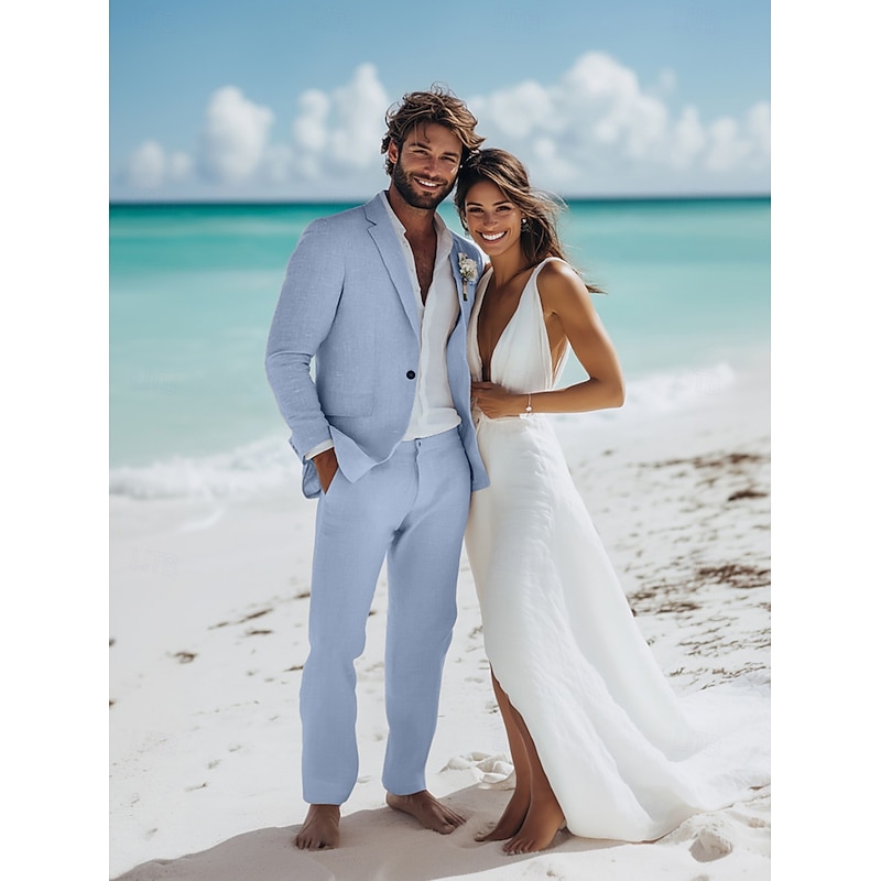 $112.99 - Men's Wedding Linen Suits Sky Blue Light Grey Daily Lightweight Solid Colored Standard Fit 2 Piece Single Breasted One-button 2025. Shop for cheap Wedding Suits online? Buy at lightinthebox.com on sale today!