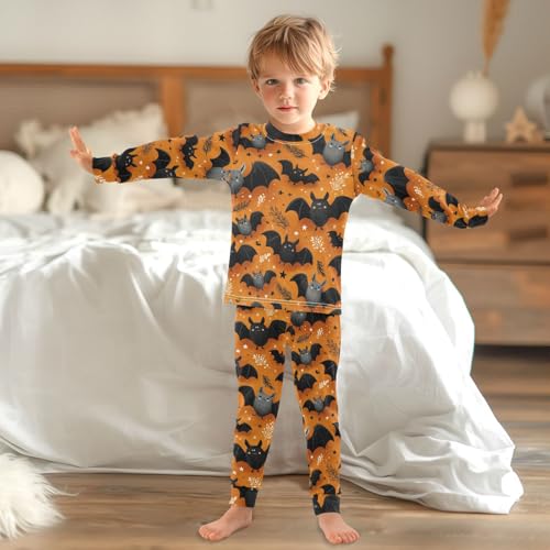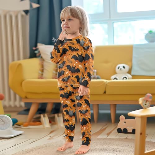 Pajama Sets Long Sleeve Flying Cute Bats on Orange Soft Comfy Sleepwear 2 Piece PJS 3-8T 4