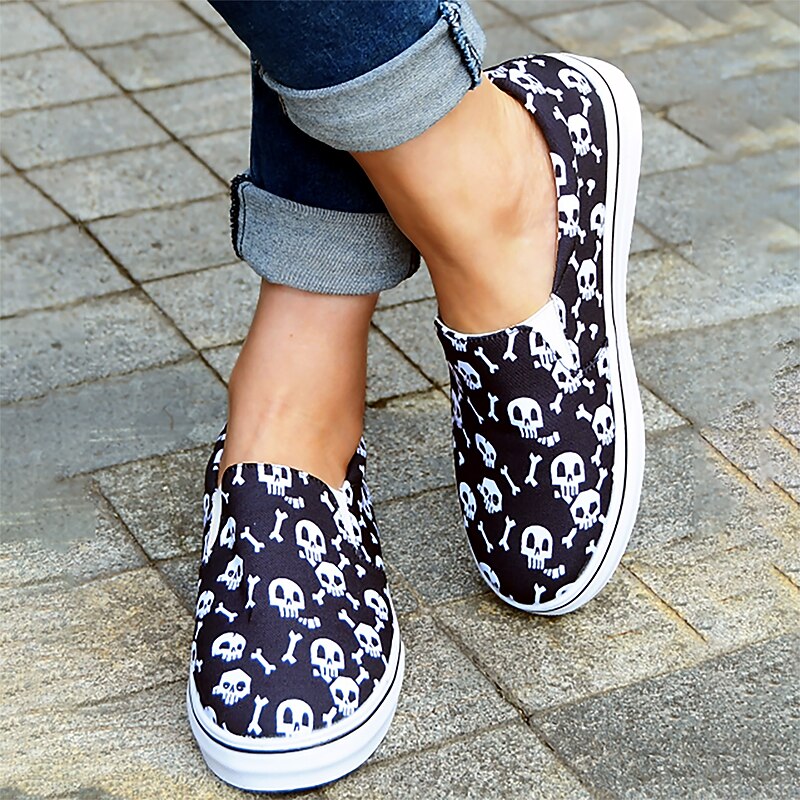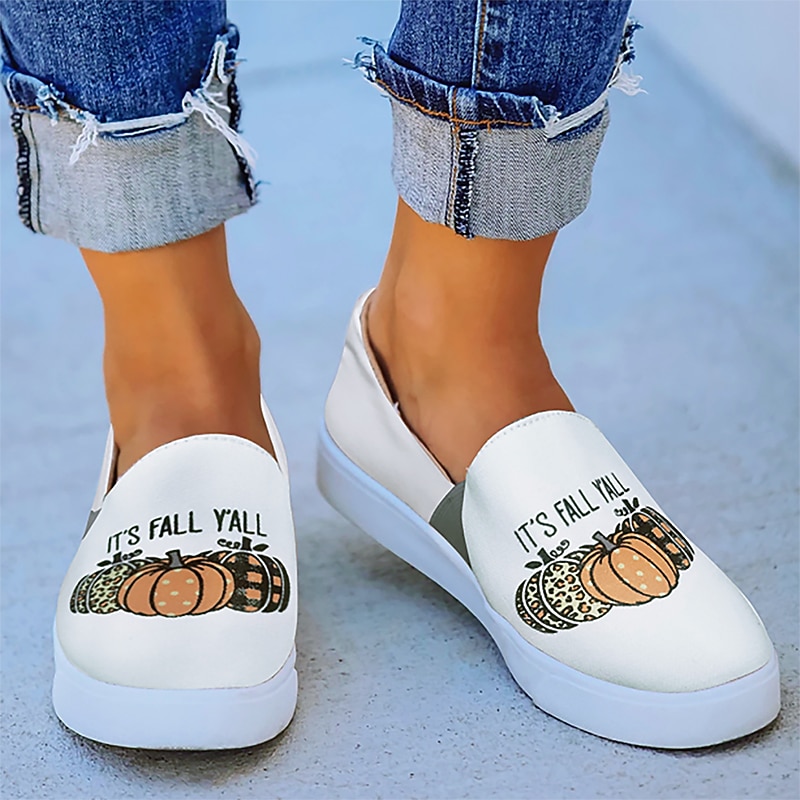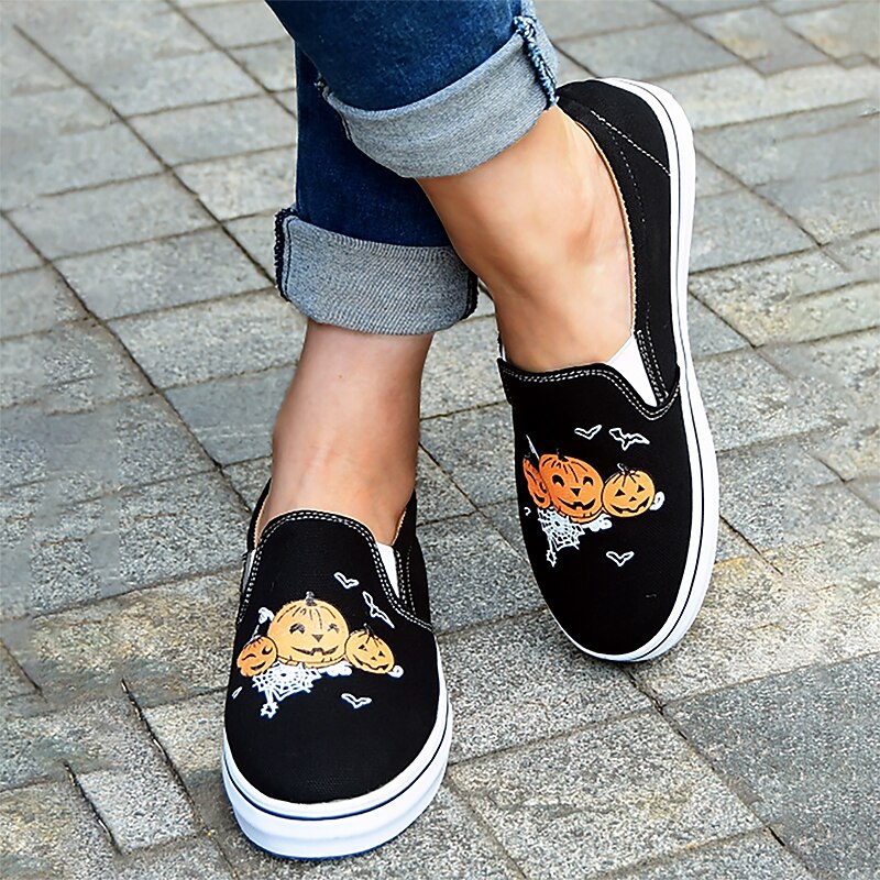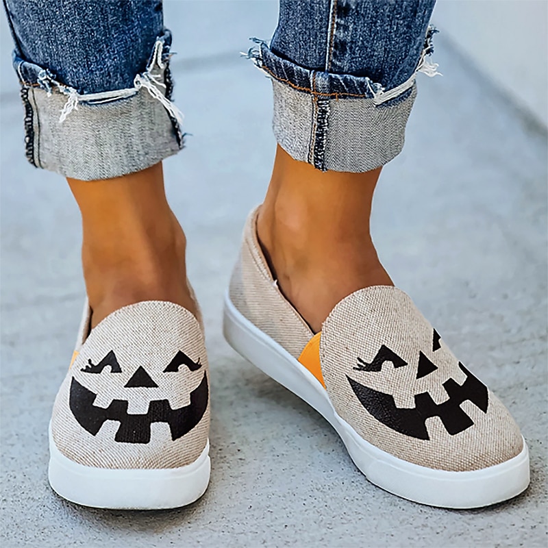 HOT ! Women's Halloween Pumpkin Slip-On Shoes - Comfortable Canvas Sneakers with Jack-O'-Lantern Print, Perfect for Casual Wear and Halloween Parties