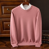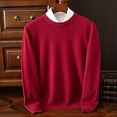 More information about Men's Pullover Sweater Jumper Knit Sweater Ribbed Knit Regular Tops Knitted Plain Crew Neck Fashion Basic Vacation Daily Wear Clothing Apparel Fall Winter Camel Wine S M L