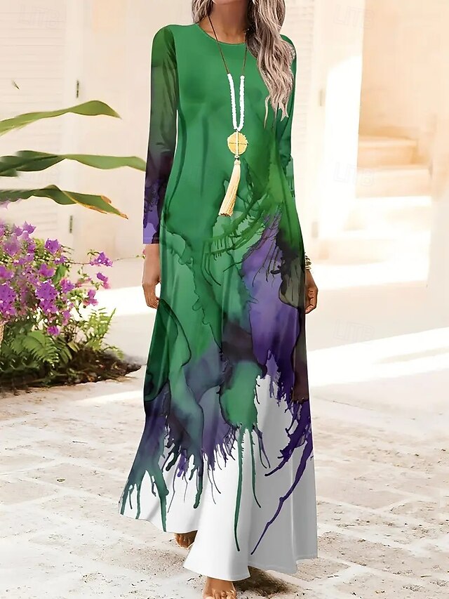 Women's Maxi Dress Shift Dress A Line Dress Party Casual Boho Daily Date Going out Regular Fit Ombre Graphic Tie Dye Long Sleeve Crew Neck Red Blue Orange Green Spring Fall Winter Autumn 2