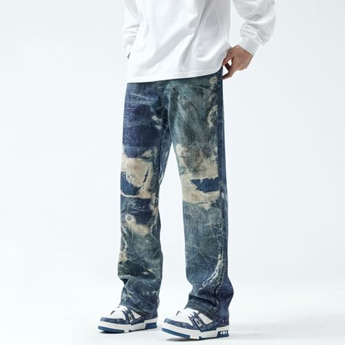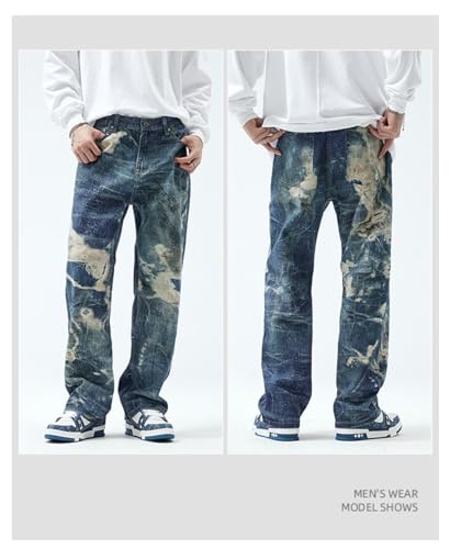 HOT ! Jeans Pants Trousers Denim Men's Non Elastic High Street Loose Floor Retro Worn-Out