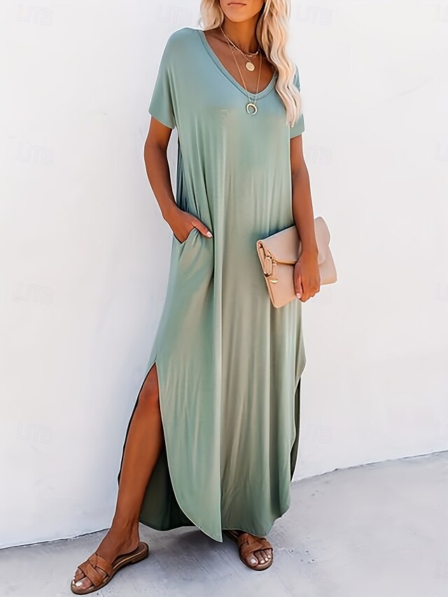 More information about Women's Maxi Dress Summer Dress Casual Daily Regular Fit Plain Short Sleeve V Neck Black Pink Green Summer