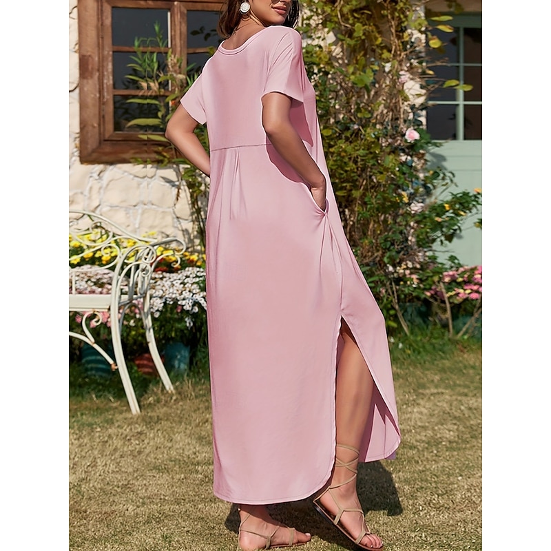 Women's Maxi Dress Summer Dress Casual Daily Regular Fit Plain Short Sleeve V Neck Black Pink Green Summer 13