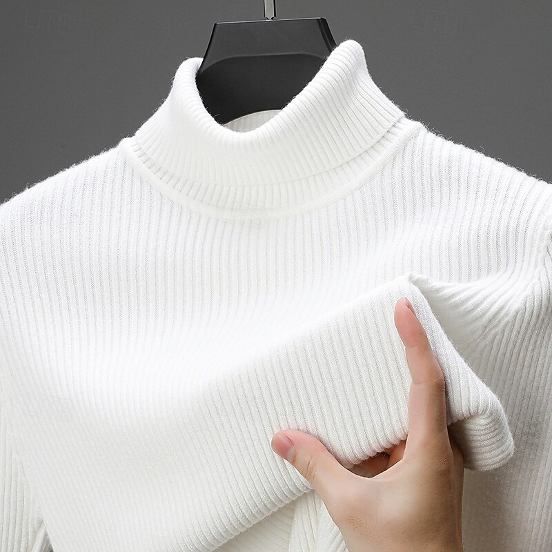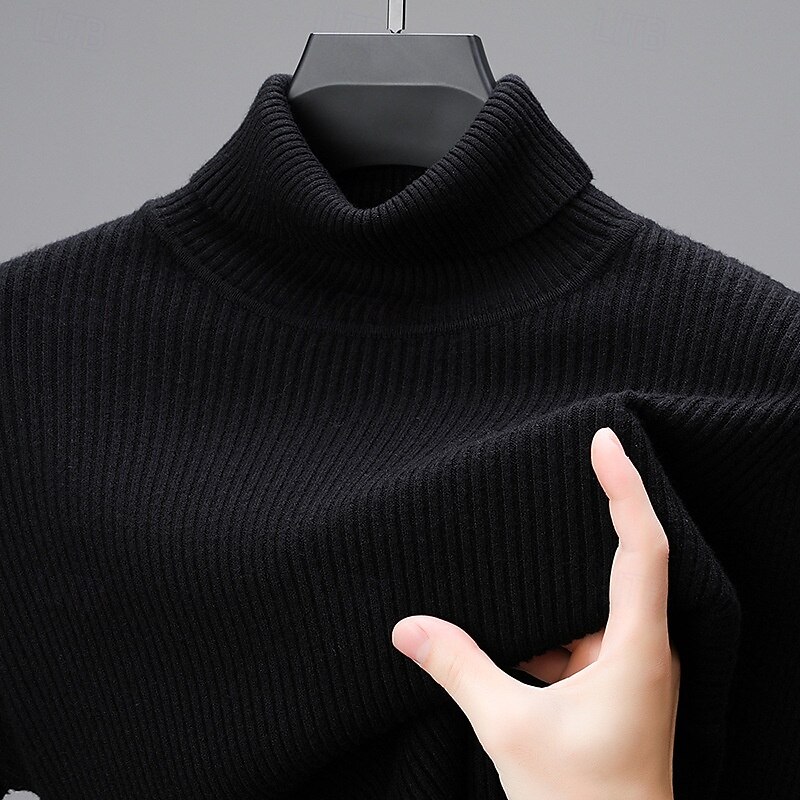 : Crafted with a cozy ribbed knit polyester, this men's turtleneck sweater promises comfort and style for the fall and winter seasons. The finely ribbed texture offers a soft and flexible fit that flatters any silhouette.