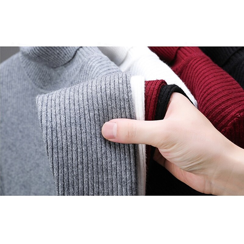 More information about Men's Pullover Sweater Jumper Knit Sweater Ribbed Knit Regular Knitted Plain Turtleneck Fashion Casual Daily Wear Date Clothing Apparel Fall & Winter Wine Black S M L