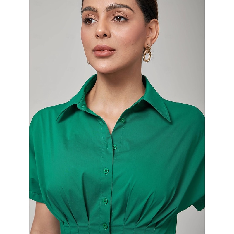 Highlights - retro and sophisticated shirt collar neckline - Elegant and timeless design feature - excellent for a professional and polished look