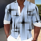 Men's Geometric Grid / Plaid Shirt Button Up Shirt Stand Collar Shirt Long Sleeve Casual Outdoor Vacation Daily Spring Fall Mandarin Collar Band Collar 3D Print Linen Like Shirt White Pink Blue Gray 10