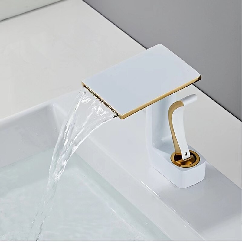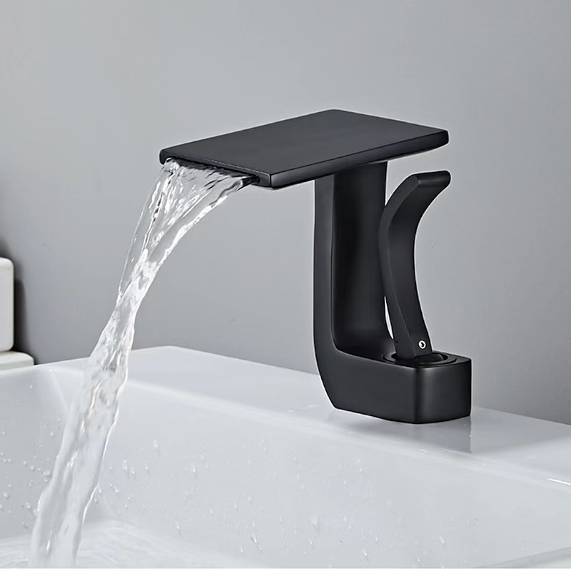 HOT ! Waterfall Basin Sink Mixer Faucet, Brass Bathroom Taps Single Handle One Hole with Hot and Cold Hose Vessel Water Tap Deck Mounted