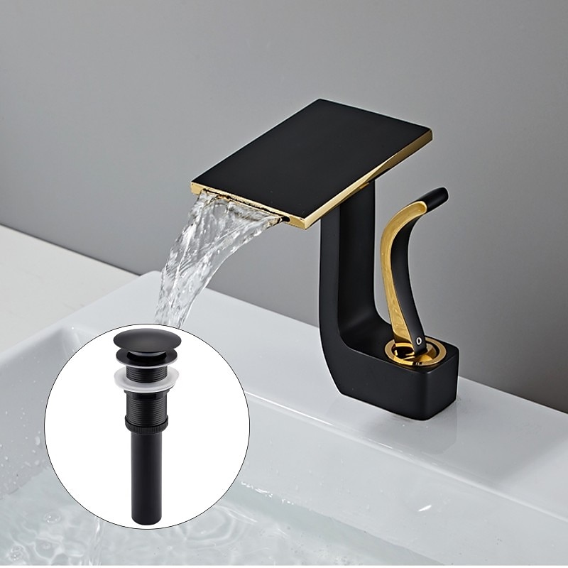 Waterfall Basin Sink Mixer Faucet, Brass Bathroom Taps Single Handle One Hole with Hot and Cold Hose Vessel Water Tap Deck Mounted 1