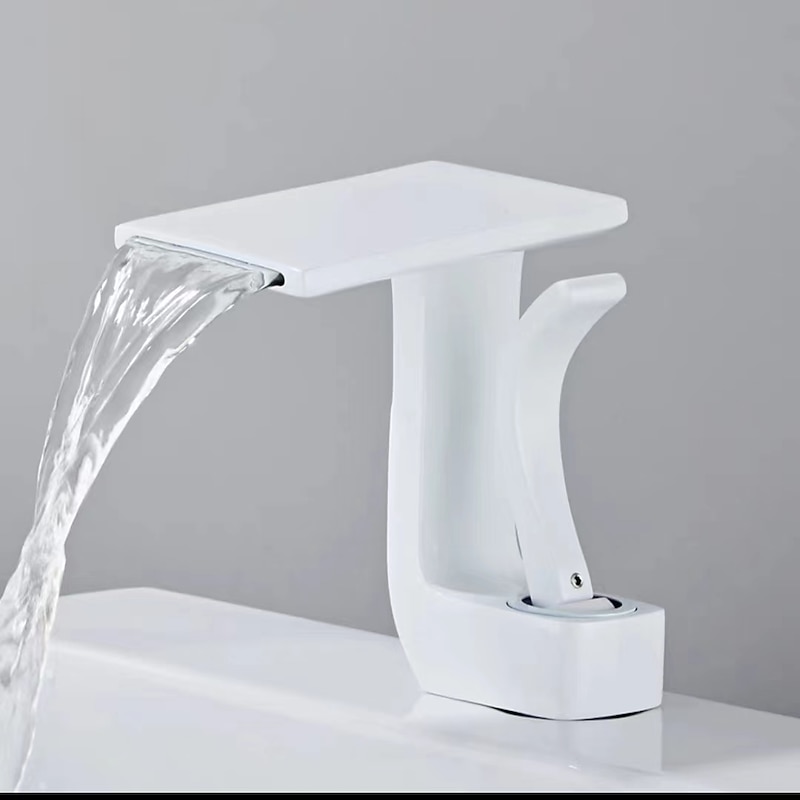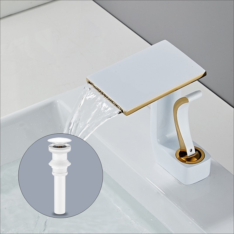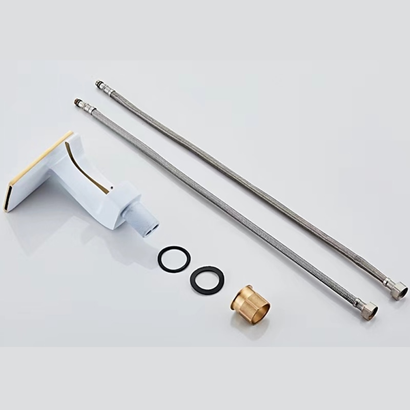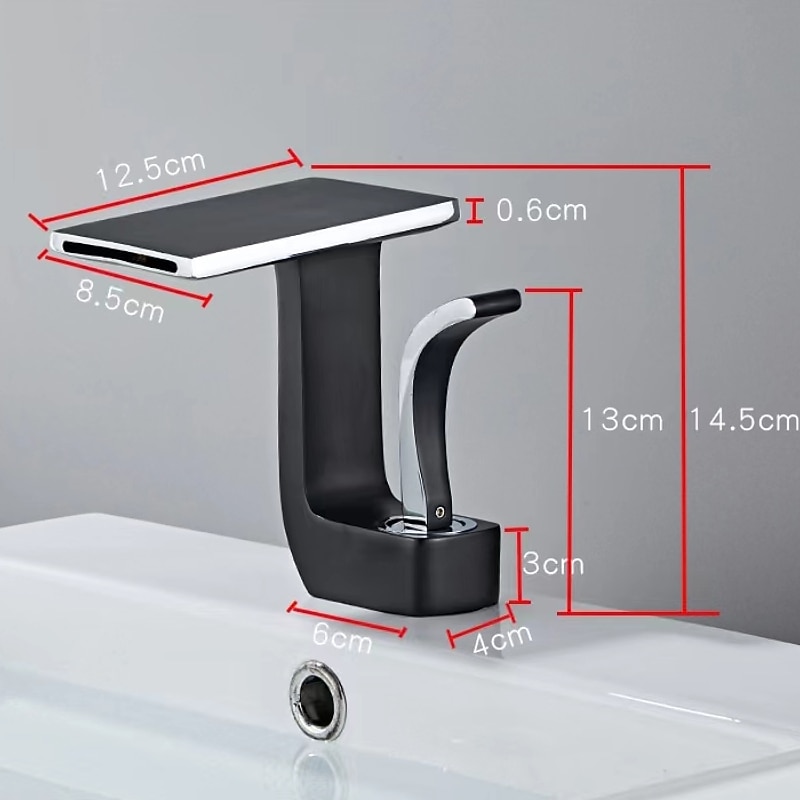 Highlights Waterfall Design : The basin tap is modern waterfall design, streamlined shape, healthy lead-free faucet, fresh water, rich foam, no splashing and easy to clean. Durable Brass : The body of this modern faucet is made of highly durable brass .to protect the health of you and your dear family. Ceramic Disc : The waterfall sink tap has a 1/4 turn ceramic disc cartridge that can survive 500.000 times open and close test. The sophisticated ceramic technology provides both comfort and control precision. Surface Finshing : Multiple polishing and beautiful chrome finish is highly reflective for easy cleaning and resists scratching, corrosion and tarnishing. Easy to Installtion : Waterfall bathroom faucet packed with 2 piece of hot and cold water supply hoses. The bathroom sink faucet is suitable for single-hole sink. Note: Dear buyer, if the parcel is found to be badly damaged, please take a photo, reject it and contact us for resolution. Because of the size measurements are handmade, so there may be 1-3CM error. Please understand because of the light irradiation or computer display difference, so I can't guarantee photos and real color is 100% the same.